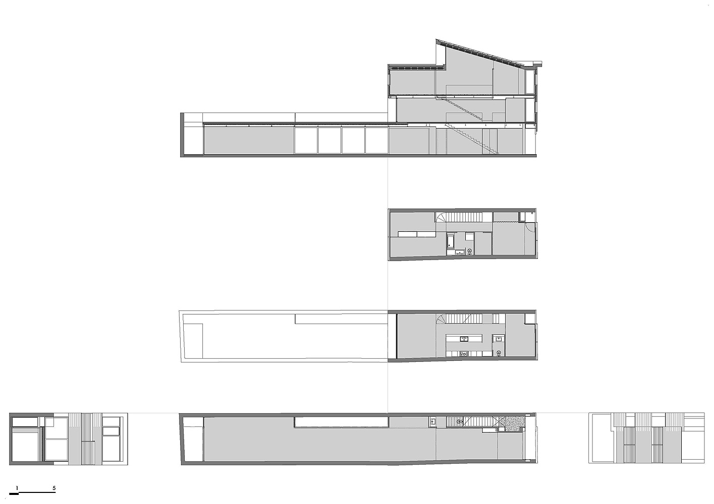 Una reinterpretación de una casa adosada tradicional en el centro de Sant Celoni, en este caso de la carretera Vella que puede ser caracterizada como una calle con un collage de muchos estilos que han sido usados para durante la existencia entera de la aldea. La fachada convierte esta falta de homogeneidad de su entorno como su motivo principal. Como leitmotiv el interior saca el maximo provecho de la luz natural que captura dentro para crear un ambiente abierto y contemporáneo, contrario a los oscuros espacios dominados por la oscuridad que generalmente se encuentran en este tipo de casa.