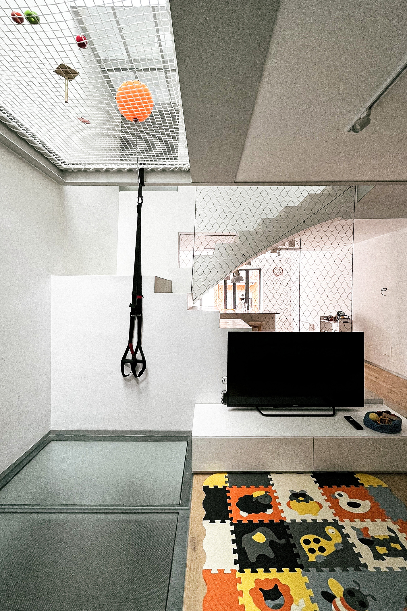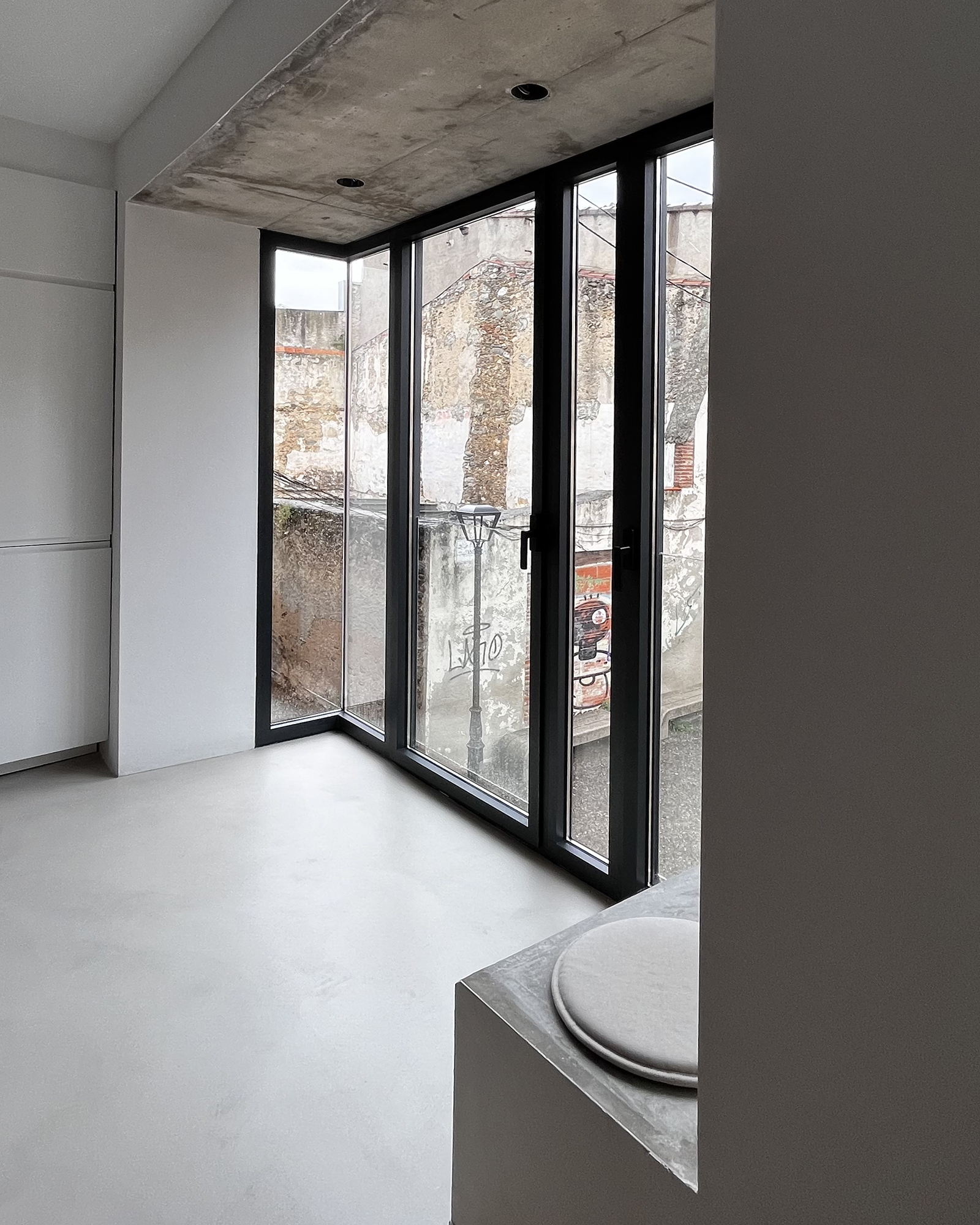Se rehabilita un edificio con tan solo una fachada, situado en la plaça dels Estudis, al núcleo antiguo de Sant Celoni, un barrio con un alto grado de protección a causa de su importancia histórica por el pueblo. La edificación es adosada a las paredes medianeras de los edificios situados a los lados laterales y al fondo de la parcela. La planta principal (primera) se ha vaciado y es ahora concebida como un espacio diáfano dedicado a las actividades de día y estará coronado por una glorieta que permite a los habitantes salir del volumen del edificio y que tener vistas laterales hasta el macizo del Montseny.