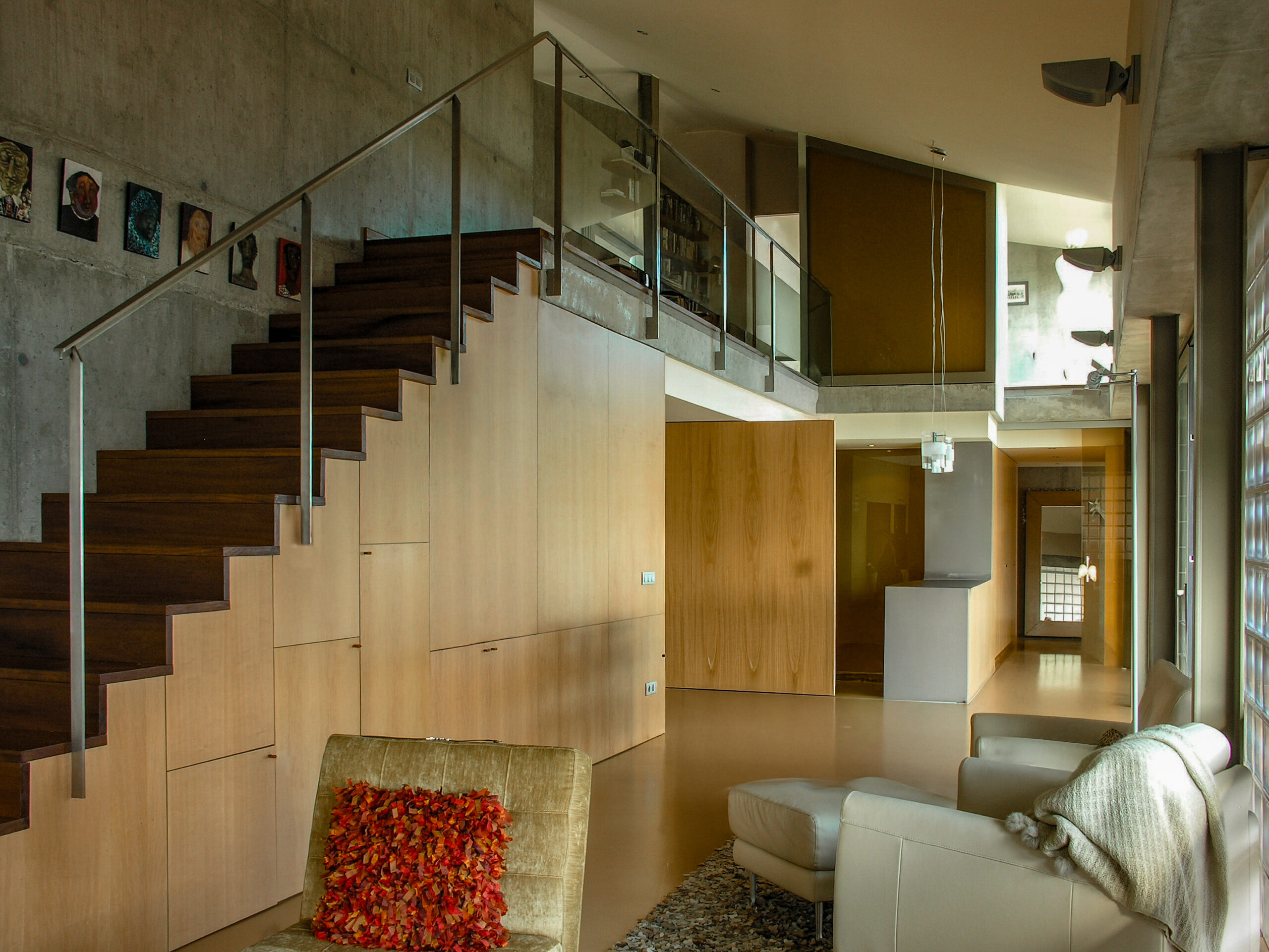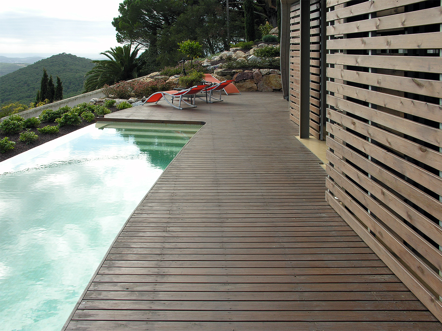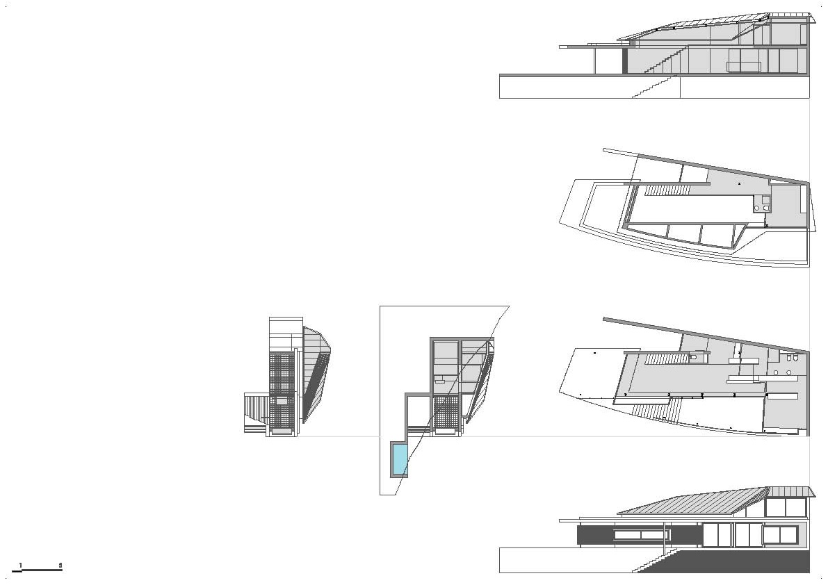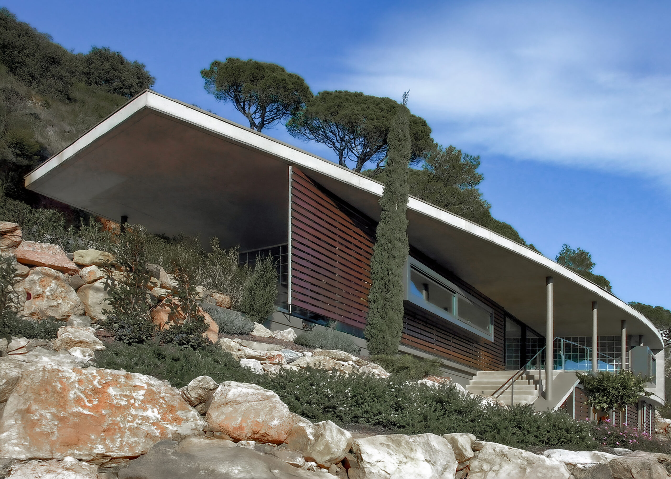 En un terreno en las afueras de Begur (Aiguablava) con una pendiente de 45 º hemos construido una casa para disfrutar de una espléndida vista de la Costa Brava. El piso principal es básicamente un espacio de doble altura con entresuelo en la forma de una 'L' y organizado en torno a un patio cubierto.
