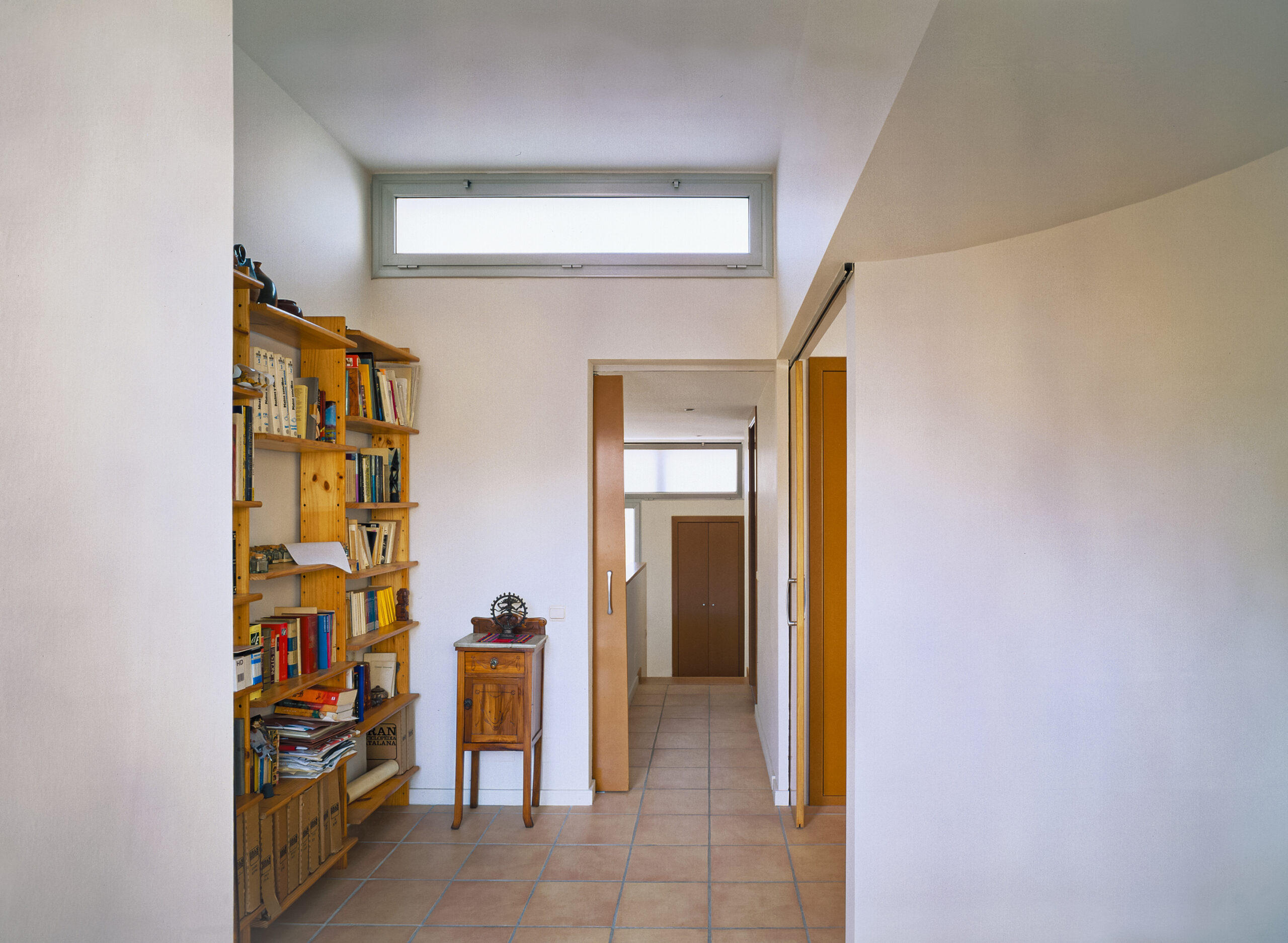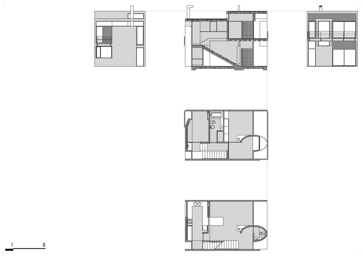 Una casa pequeña y económica para un cliente soltero, introvertida frente a la calle y extrovertida hacia el patio. Espacios en la planta baja son para uso durante el día y la primera planta está dedicada a la noche. Las alturas de las habitaciones se definen según el programa, lo que crea un volumen mínima para una máxima sensación de espacio.